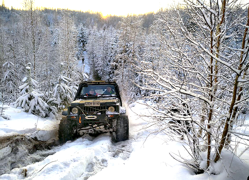 Kevyt pakkaslumi vain pöllysi, kun paikallisten maastoautoharrastajien offroad-autot painelivat Tapaninpäivänä pitkin metsiä ensin kirkonkylällä ja sitten Auttoisilla. Yhteensä parikymmentä Padasjoen Maastoautoilijoiden jäsentä lähti perinteiselle Tapaninpäivän safarille.