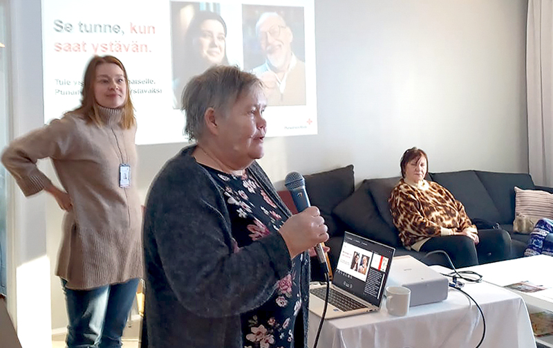 Hanne-Miia Niemi Suomen Punaisen Ristin Hämeen piiristä kävi Olkkarilla kertomassa SPR:n ystävätoiminnasta.
