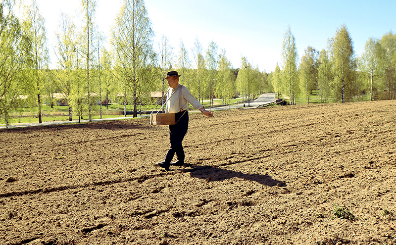 Toukosiunaustilaisuudessa 15.5. Timo Lempinen suoritti jälleen kerran näytöksenomaisen viljankylvön vanhanaikaiseen tapaan.