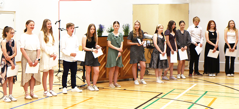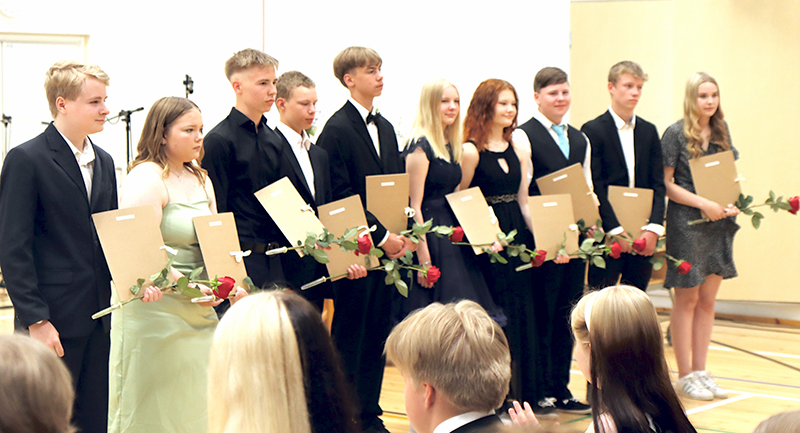 Yhdeksäsluokkalaiset muistelivat puheessaan lämmöllä koko yhteisen peruskoulun taipaleellaan kertyneitä parhaita hetkiään. Korona-ajan etäopetus vaikutti silloisten viidesluokkalaisten opiskeluun vaihtelevasti.