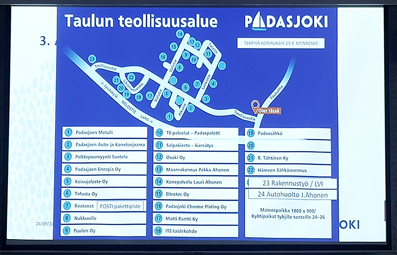 Taulun teollisuusalueen opastustaulusta käytiin antoisa keskustelu torstaina 26.9. kunnan valtuustosalissa järjestetyssä palaverissa.