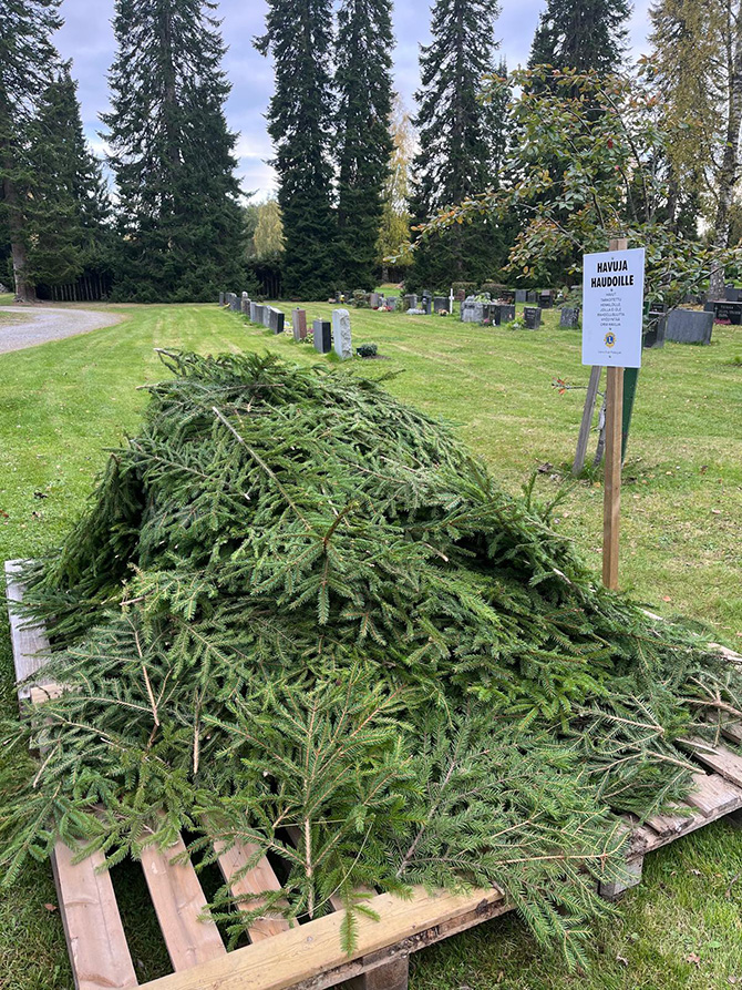 Padasjoen Lions Club toimitti jälleen eilen perjantaina hautamaalle huoltorakennuksen puoleiseen päätyyn havuja haudoille laitettavaksi.