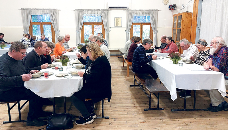 Yli 30 henkeä söi kylätalolla Nelli Taavilan tekemää jauhelihakeittoa. Juurekset kyläyhdistys sai lahjoituksena Tohijärven luomutilalta Evolta.