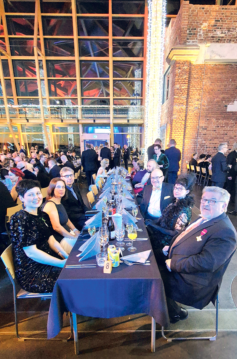 Sibeliustalolla pöydän päässä padasjokelaisista merkinsaajista Elena Kukushkina ja Jarkko Hokka. Kuvia juhlassa otti Padasjoen Yrittäjien sihteeri Susanna Polkutie.